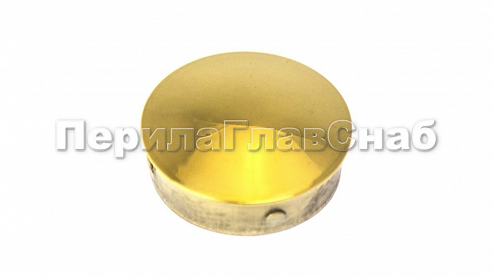 Заглушка штампованная под трубу диаметром 38х1.5 мм. Поверхность детали полированная с покрытием нитрида титана. Материал детали - AISI 304, под золото