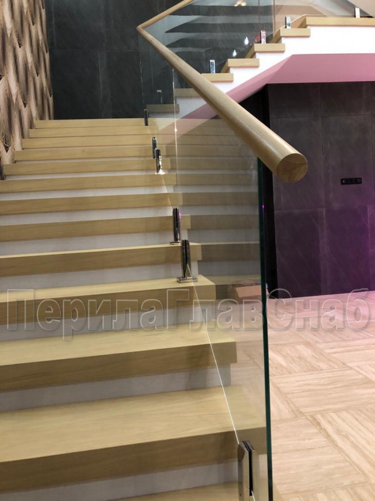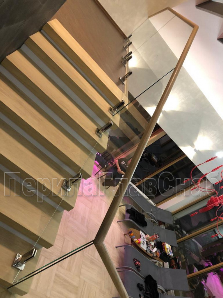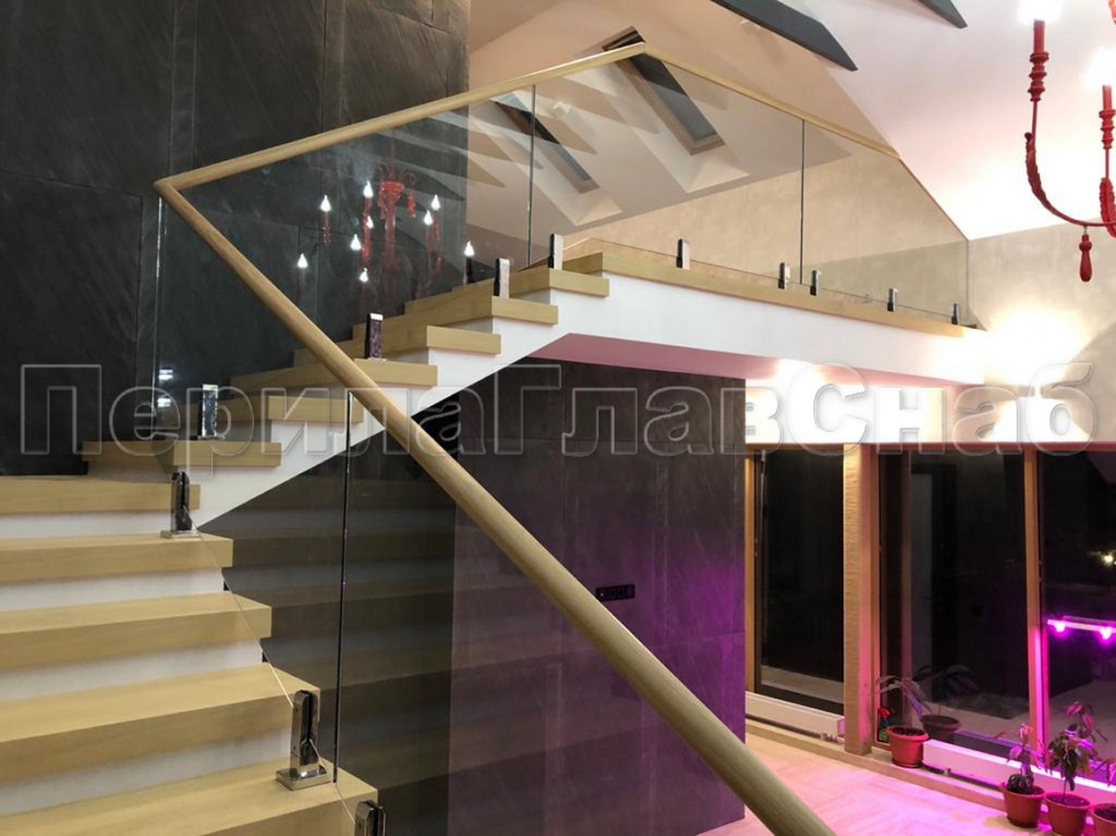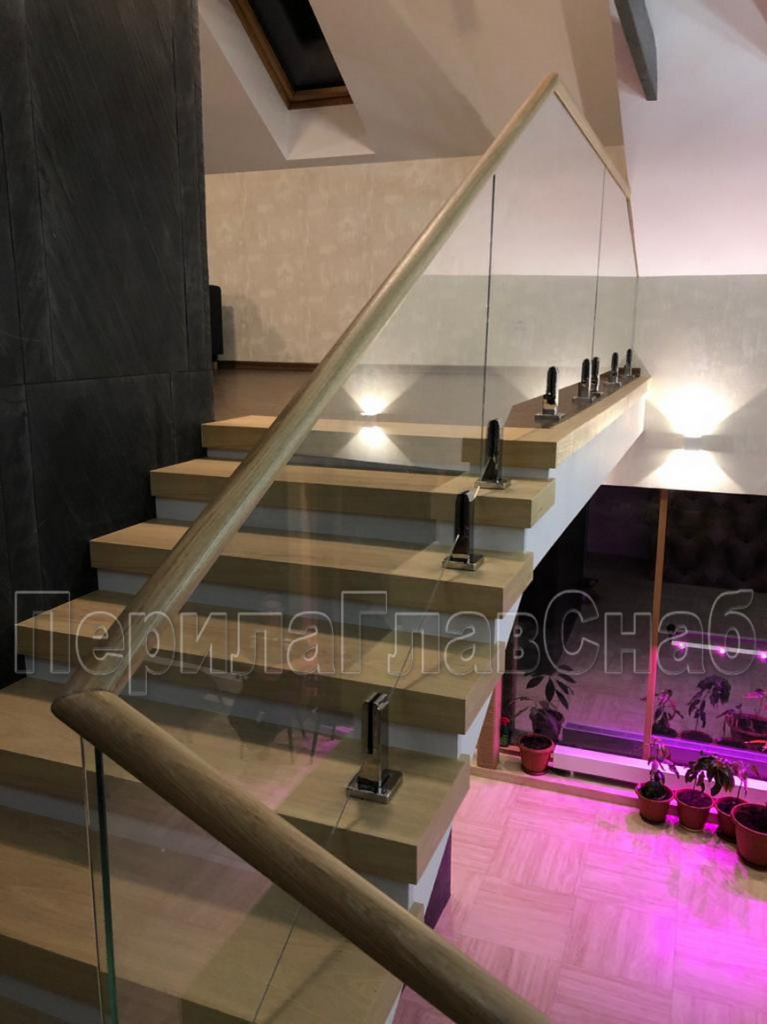Конструктив: дубовые перила на калёном стекле 10 мм, с министойками