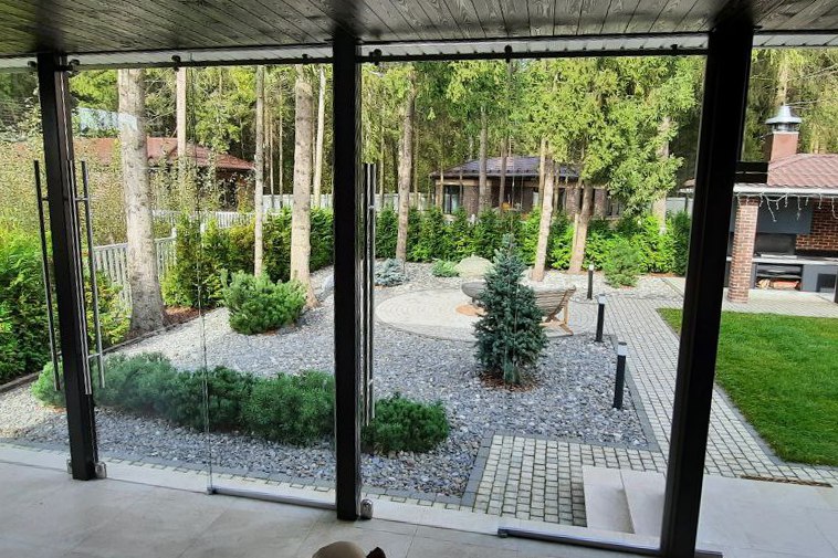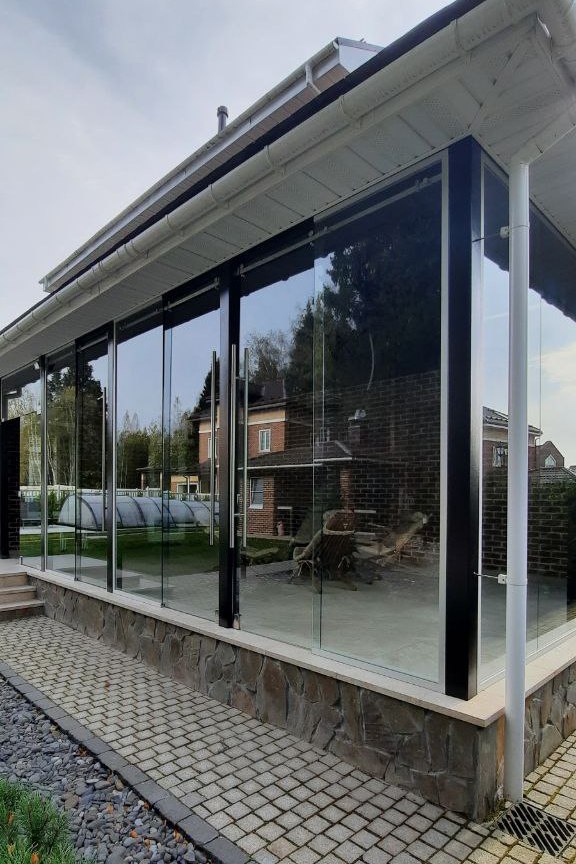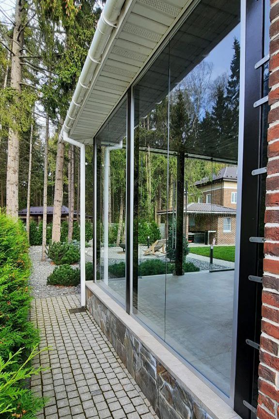 Частный загородный дом (установка цельностеклянной конструкции)