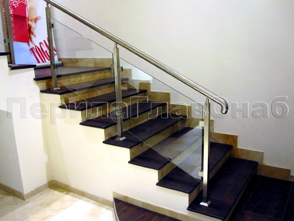 В одном из крупнейших салонов трикотажа столицы было установлено несколько типов ограждений со стеклом и лестниц, облицованных деревянными ступенями.