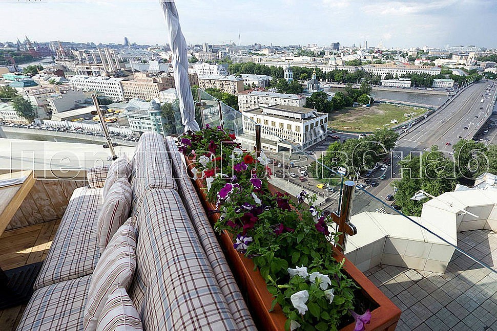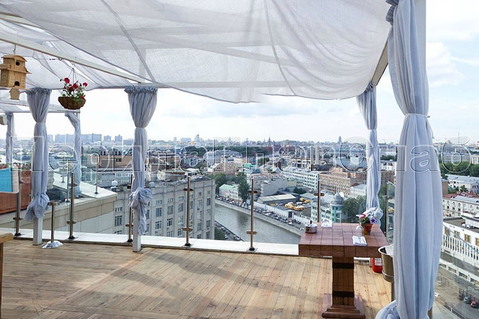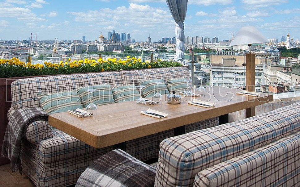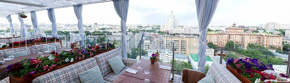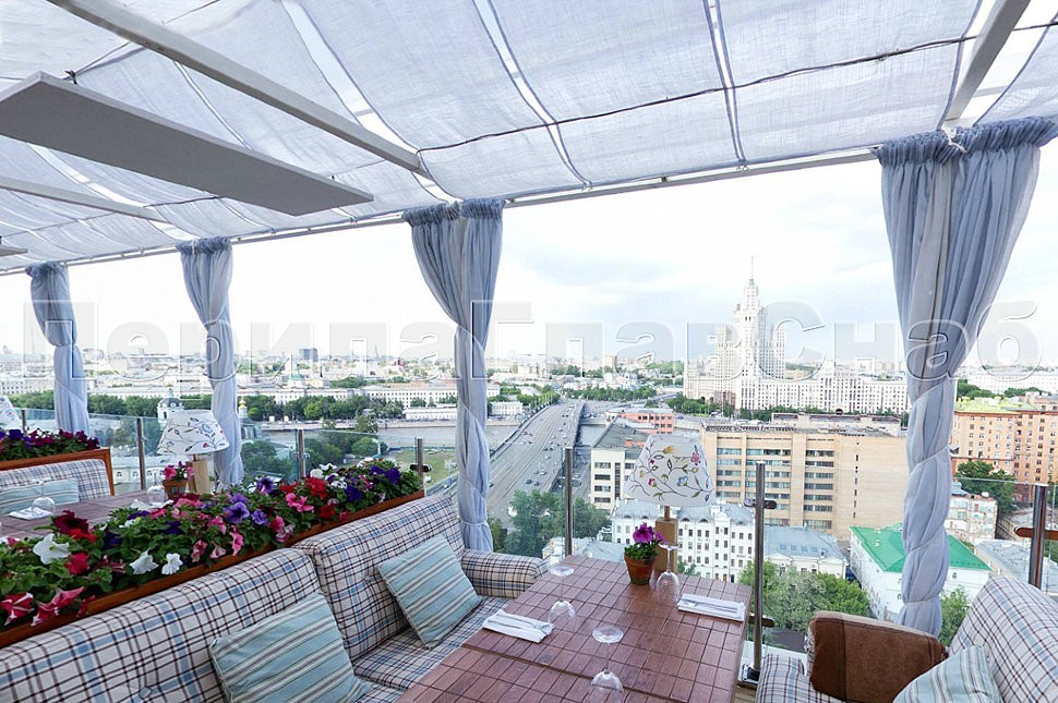 Помимо замечательного и практически незабываемого внешнего вида, открывающегося посетителям ресторана с высоты птичьего полета на потрясающую панораму Москвы, веранда обзавелась гармонично вписанным в интерьер ограждением со теклом на стойках из полированной нержавеющей стали, установленных сверху в плитку карниза. Красота в сочетании с безопасностью конструкции обеспечивают не только эстетическое наслаждение гостей и друзей ресторана, но и столь необходимую всем защиту от роковых неожиданностей.