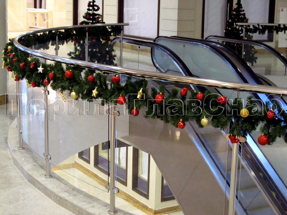 В здании было установлено ограждение со стеклом изогнутым по радиусу.