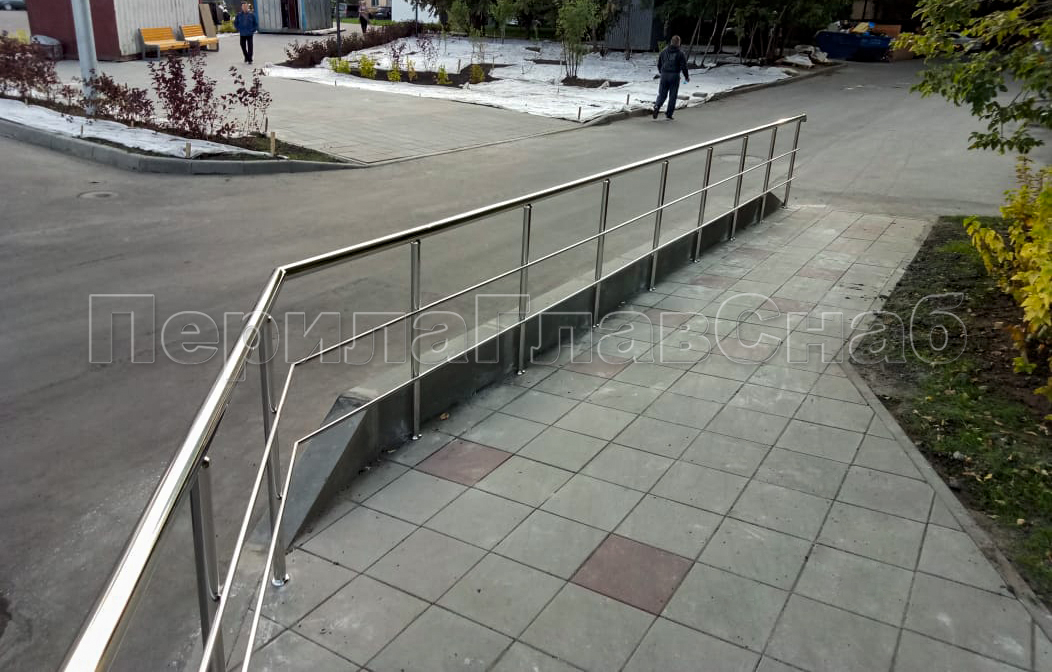 Произведен монтаж перил на улицах г. Москвы в рамках проекта благоустройства по адресу «Народного ополчения 28». ПерилаГлавСнаб как субподрядчик отвечали за безопасность пешеходов на улицах Москвы. Первым этапом было изучение тех задания от заказчика по предоставленной тендерной документации. Специалисты компании смогли дать конструктивные решения, которые позволили принять  положительное решение в пользу компании «ПерилаГлавСнаб» по предоставленному тендеру. Проходная цена в рамках этого тендера работ под ключ составила 5 925 рубля за метр погонный. Работы проводить планировались на открытой местности в жатые сроки, несмотря на плохие погодные условия.  Подготовленное техническое задание менеджером компании было передано прорабу для ознакомления и осуществления комплектации с собственной складской базы компании. В обязанности прораба на объекте входил контроль монтажной бригады, решение возникших технических вопросов с заказчиком.  Особенностью проекта стала ежедневная передача фото-отчета о выполненной ежедневной работе заказчику. Ограждения соответствуют качеству ГОСТ 25772-83. Конструктив изделия по требованиям заказчика стойка ф 38 мм, ригель 2-шт ф 16 мм, поручень ф 38 мм с каплевидными отводами на окончаниях поручней. Отвод обваривается по кругу с последующей зачисткой и полировкой. Важно, что для общественных мест мы всегда рекомендуем выбирать именно такой, антивандальный метод установки. Такие перила не поломаются в процессе эксплуатации населением. И не придется тратить заказчикам дополнительные бюджетные деньги на ремонт дешевых ограждений.  Марка стали использовалась высоколегированная AISI 304L толщина металла 1,5 мм, специально для уличного исполнения. Конструктив изделия не сложный, но необходимо было использовать вспомогательную технику в виде бензин-генератора т.к. отсутствовал доступ к электроэнергии. Дополнительно производилось укрепление стоек ограждений, метровой закладной, которая вбивалась в грунт. Монтаж ограждений в тротуарную плитку не позволял использовать стандартный крепеж типичного бурения на глубину 50-70 мм.  Протяженность всех ограждений составила  150 погонных метров по всей улице.
