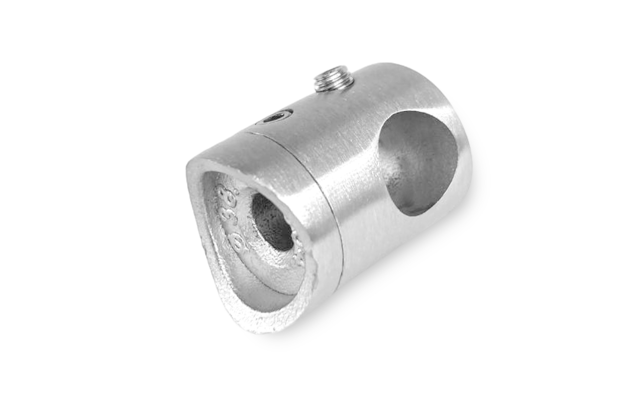Для монтажа ригельных ограждений. Для крепления трубы Ø12 мм из нержавеющей стали к стойке Ø38.1 мм на ограждении с ригелями