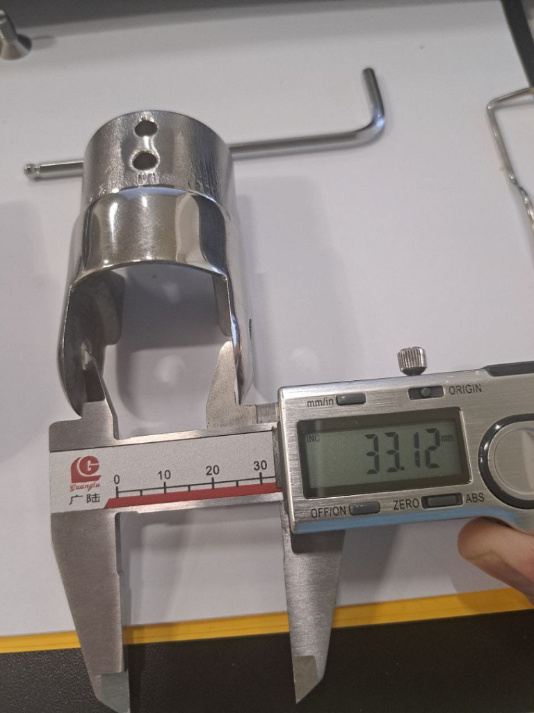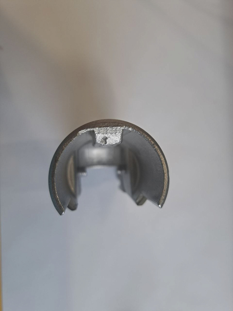 Фитинг литой, неубиваемый, в отличие от его штампованных аналогов, которые можно в буквальном смысле разорвать пополам, резко дернув с изгибом в разные стороны, этот поворот сделан на века. В нашей практике есть случаи, когда монтажники заказчиков забивали его внутрь трубы и при этом ни один линейный размер не отклонился ни на миллиметр. Более того, внешний диаметр обода поворота позволяет создать гладкую, ровную поверхность поручня без перепадов и подскоков, либо препятствий для скольжения руки вдоль перил.