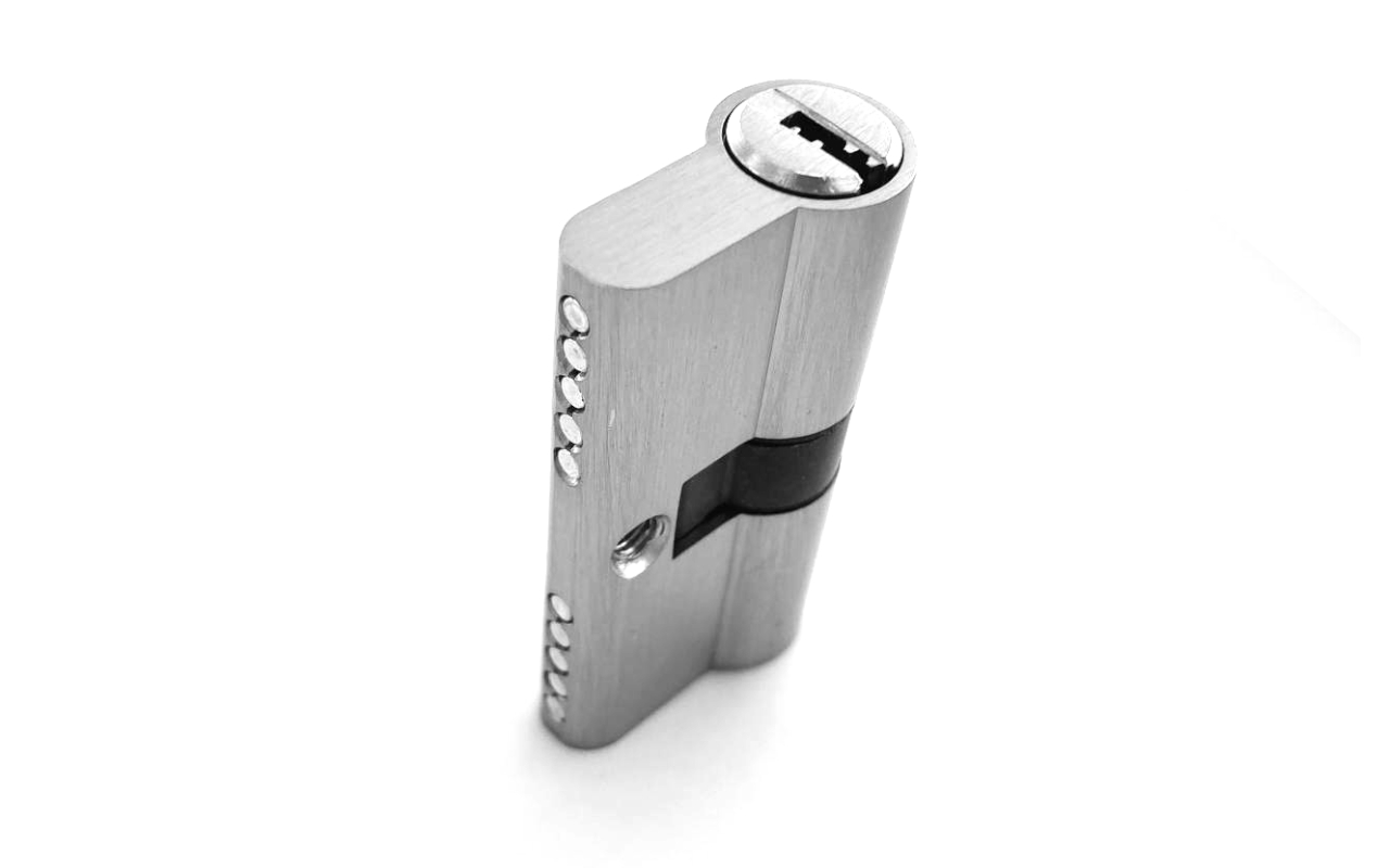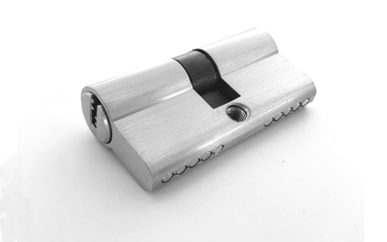 вставить личинку в отверстие. После этого нужно совместить крепежное отверстие на личинке с отверстием в корпусе замка. На этом этапе необходимо вставив шуруп «поймать» отверстие личинки и вкрутить шуруп до конца, не забыв после этого проверить работоспособность запирающего устройства. И собрать замок обратно