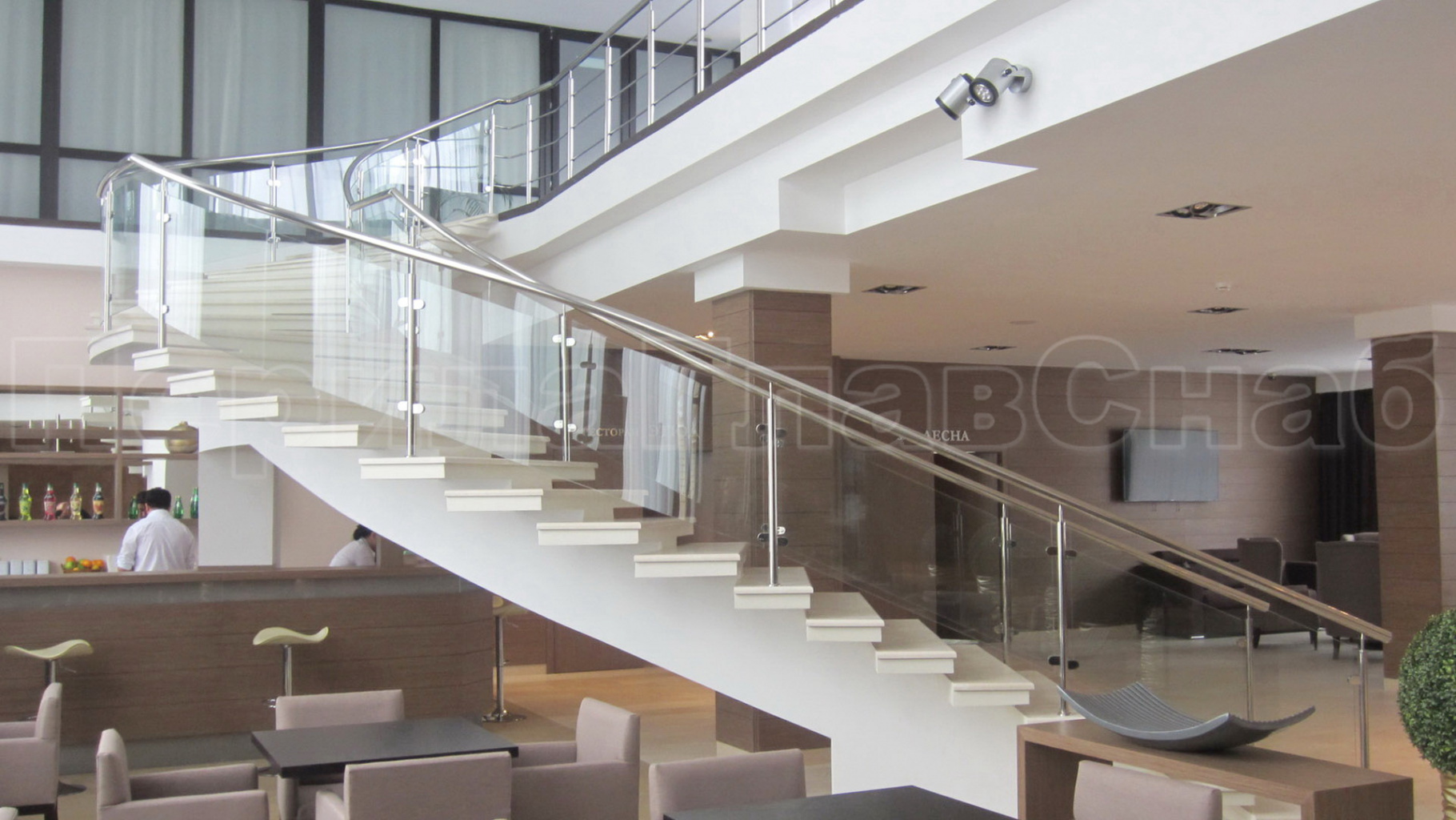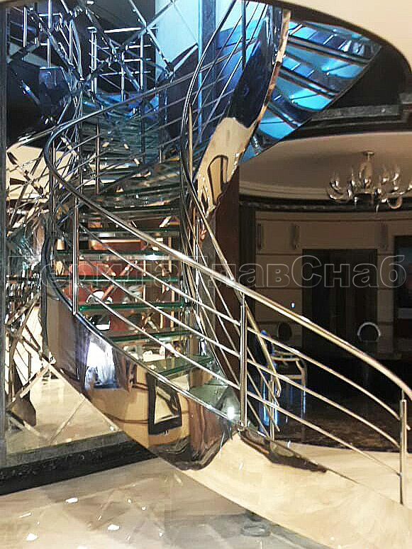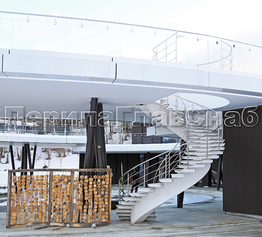 Стеклянные ограждения винтовой лестницы и баллюстрады в Казани. Готовые проекты ПерилаГлавСнаб