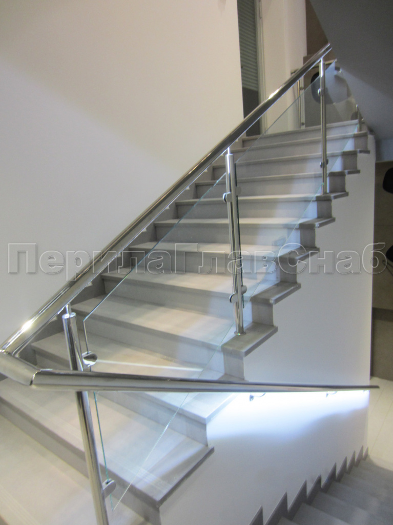 Ограждение для лестницы из нержавейки с зажимными стеклодержателями для крыльца в Казани. Готовые проекты ПерилаГлавСнаб - фото 1 Ограждение для лестницы из нержавейки с зажимными стеклодержателями для крыльца в Казани. Готовые проекты ПерилаГлавСнаб - фото 2