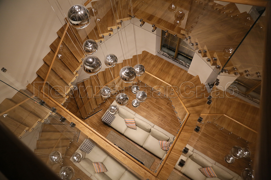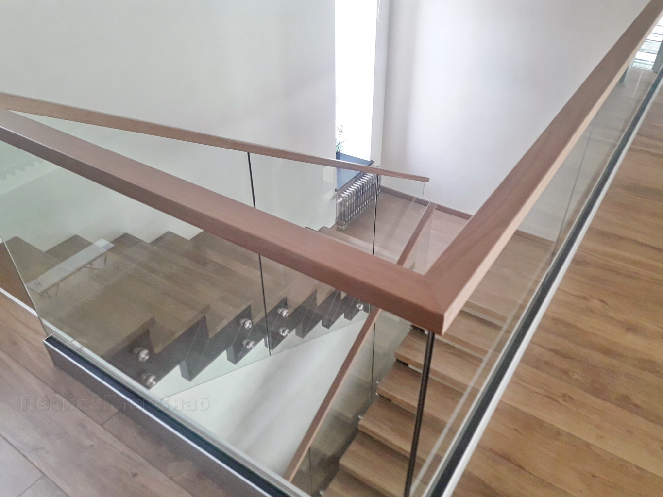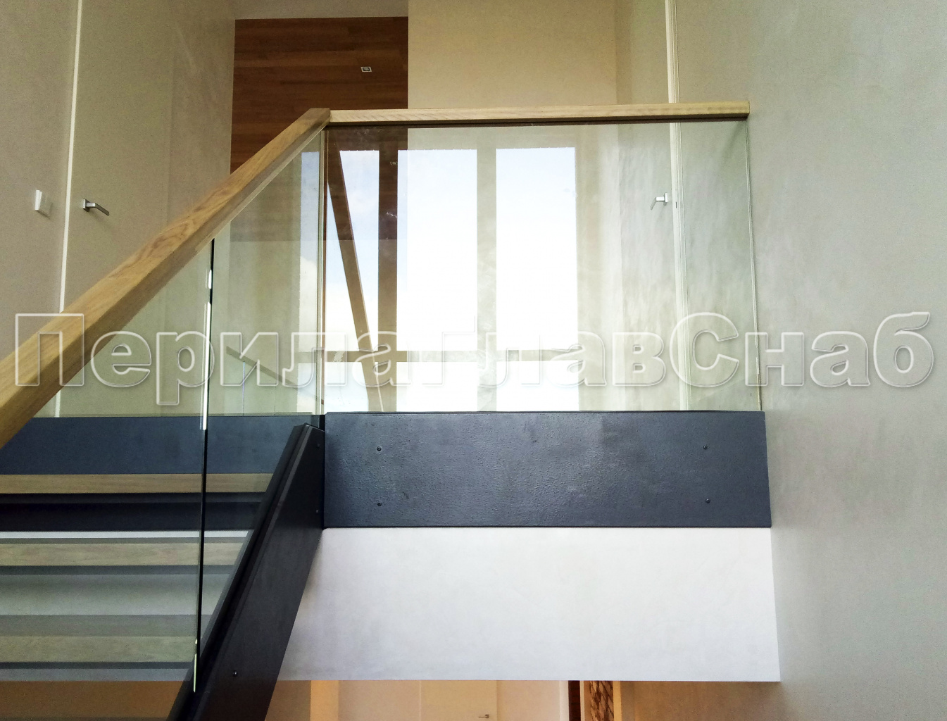 Ограждение с деревянным поручнем с зажимными стеклодержателями и стойками в Казани. Готовые проекты ПерилаГлавСнаб - фото 1 Ограждение с деревянным поручнем с зажимными стеклодержателями и стойками в Казани. Готовые проекты ПерилаГлавСнаб - фото 2