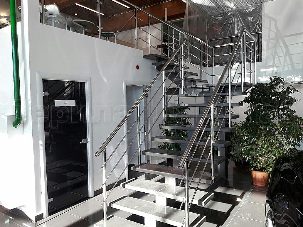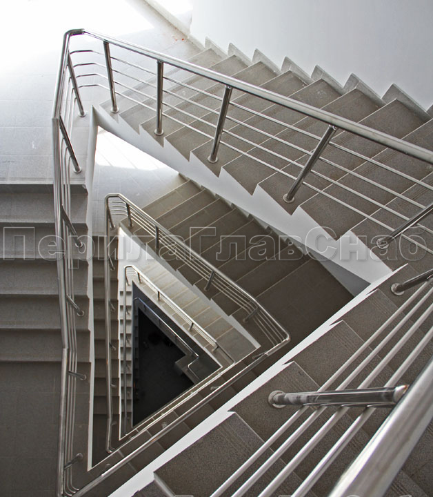 Ограждение для лестницы из нержавейки с зажимными стеклодержателями для крыльца в Казани. Готовые проекты ПерилаГлавСнаб