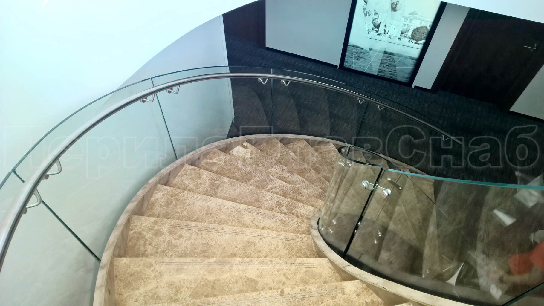 Стеклянные ограждения винтовой лестницы и баллюстрады в Казани. Готовые проекты ПерилаГлавСнаб - фото 1
