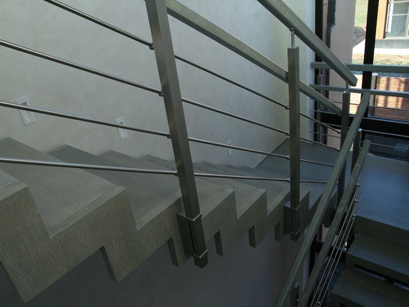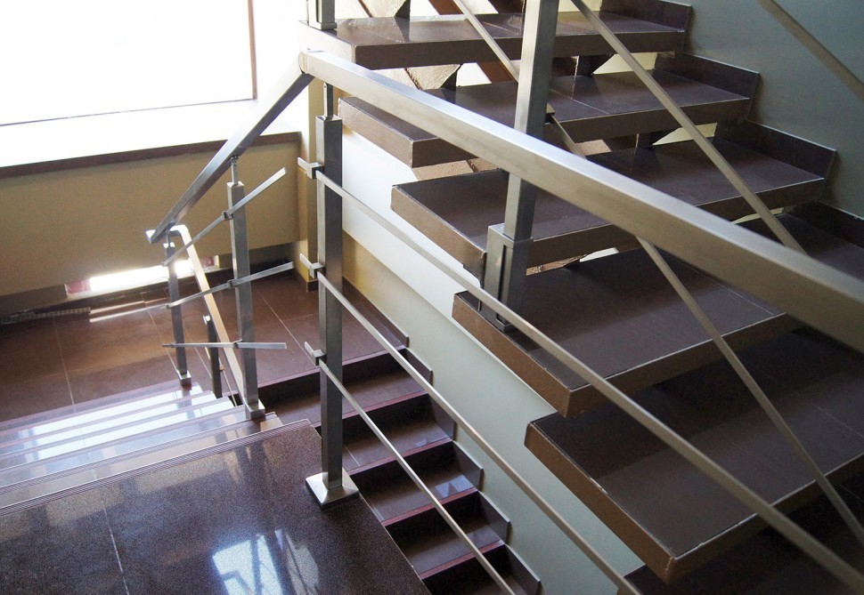 Ограждения с квадратным поручнем со стойками в каждую ступень без ригелей