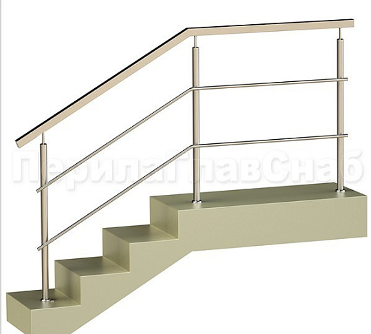Три ригеля на сварке, квадратный деревянный поручень и круглые стойки