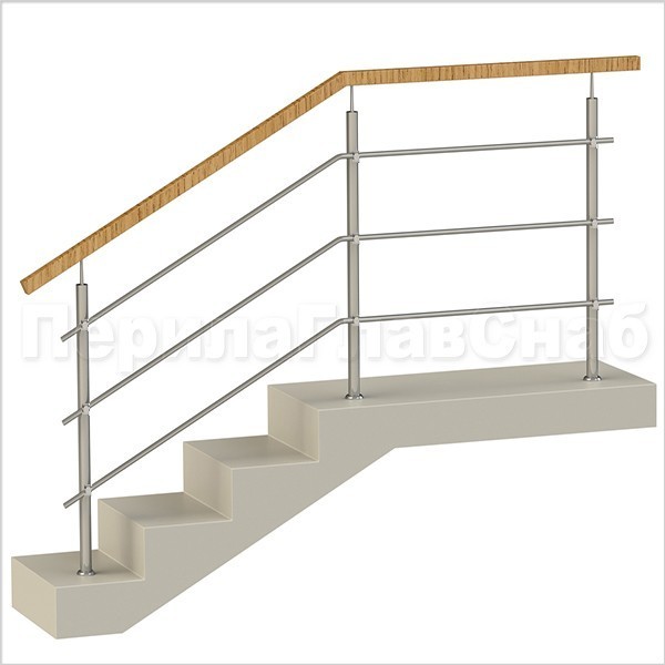 Три ригеля на держателях, квадратный деревянный поручень и круглые стойки