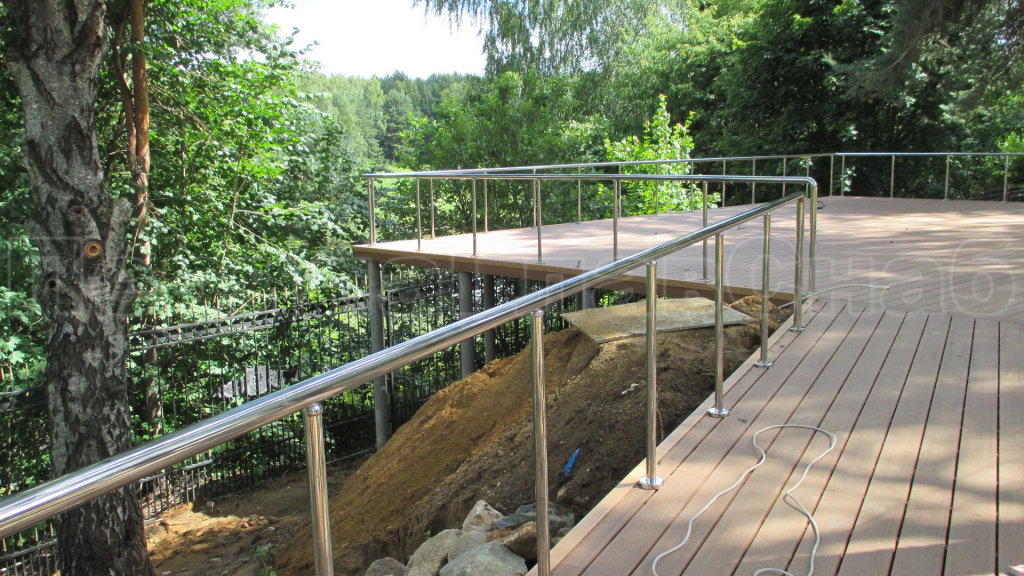 Нержавеющие ограждения без ригелей с деревянным поручнем в Казани. Готовые проекты ПерилаГлавСнаб
