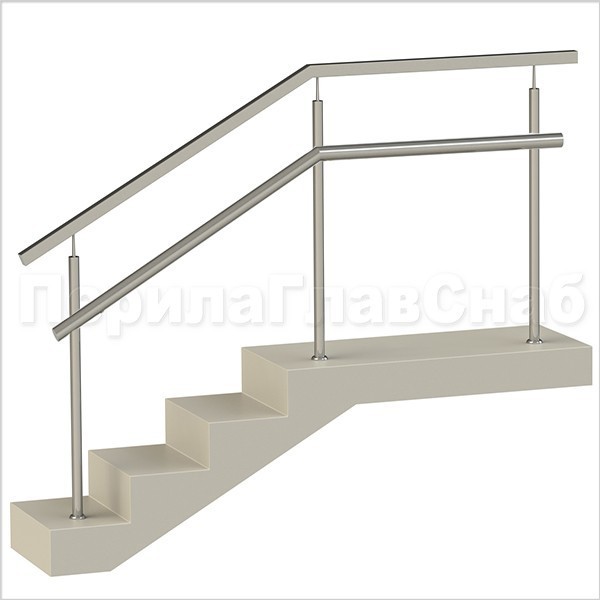 Два ригеля на держателях, круглый поручень и квадратные стойки