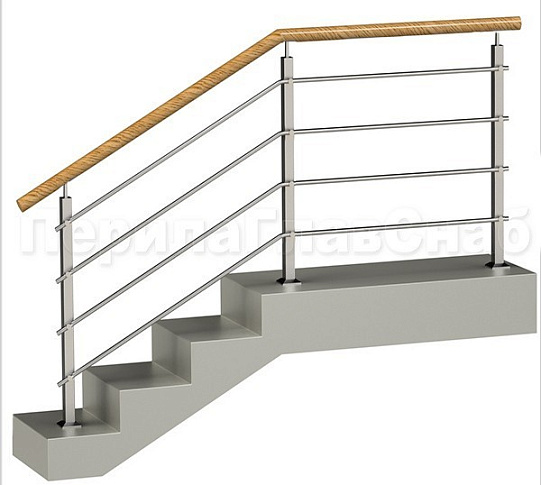 Четыре ригеля на держателях, квадратный деревянный поручень и квадратные стойки