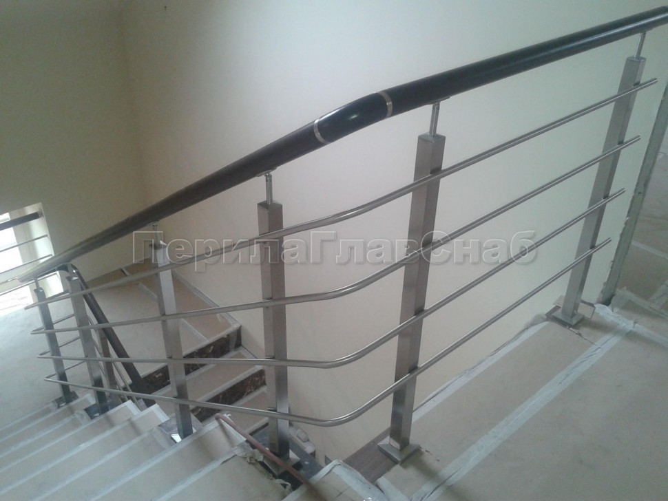 Четыре ригеля на сварке, круглый поручень и квадратные стойки