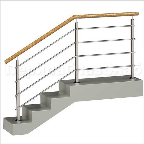 Четыре ригеля на держателях, квадратный деревянный поручень и квадратные стойки