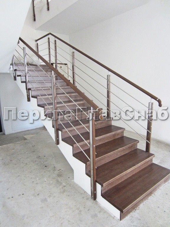 Ограждение со стойками из шлифованной нержавеющей стали с боковым крепежом, со вставками из дерева в Казани. Готовые проекты ПерилаГлавСнаб - фото 1 Ограждение со стойками из шлифованной нержавеющей стали с боковым крепежом, со вставками из дерева в Казани. Готовые проекты ПерилаГлавСнаб - фото 2