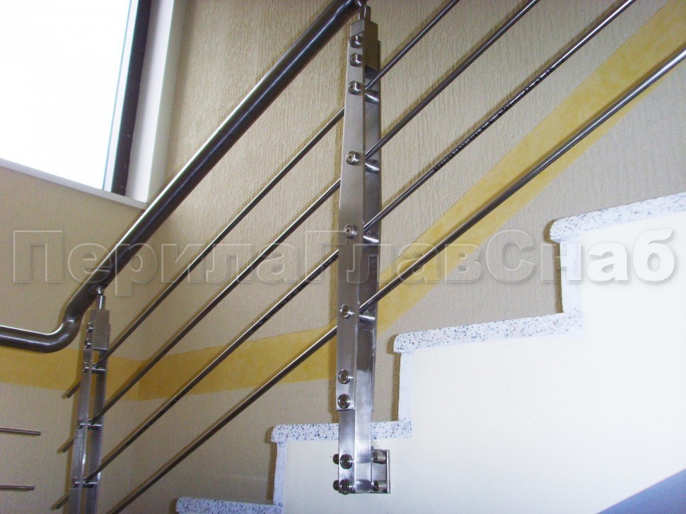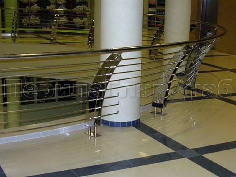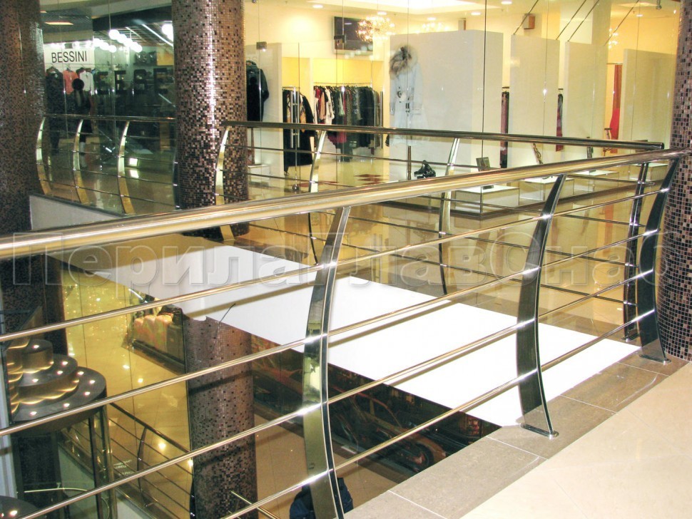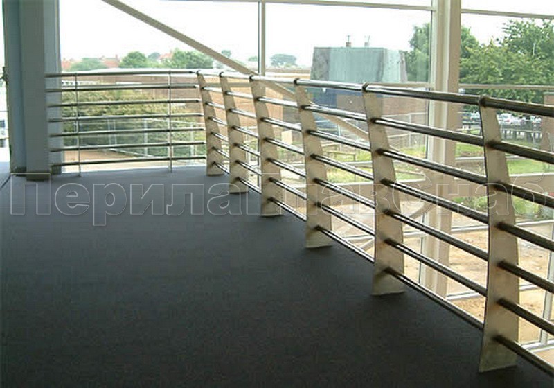 Записаться на встречу Ограждение с нестандартными нержавеющими стойками и ригельным заполнением