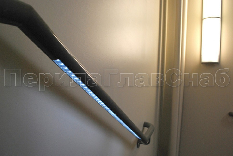 Два ригеля на сварке, круглый пластиковый поручень и круглые стойки