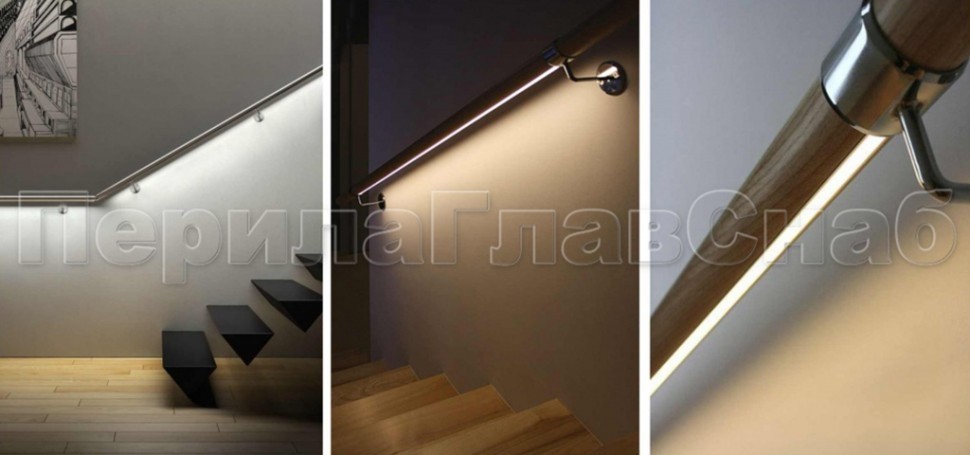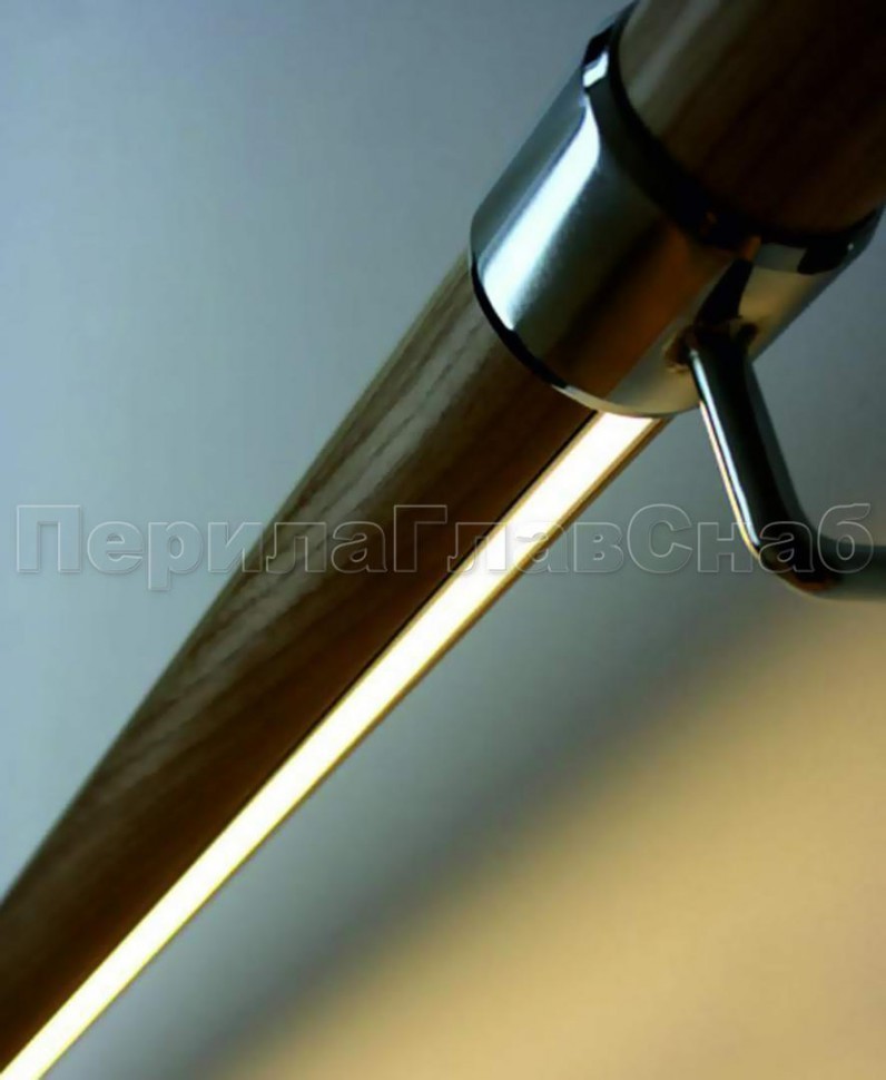 Три ригеля на держателях, квадратный деревянный поручень и круглые стойки