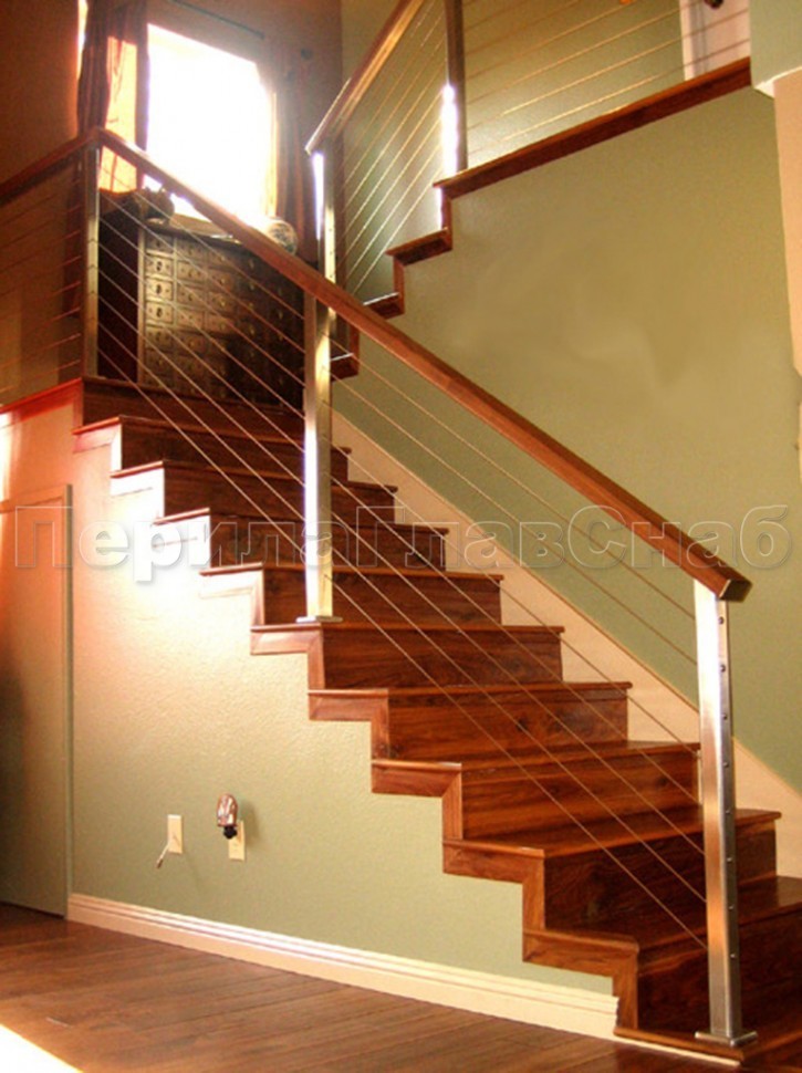 Ограждения из нержавейки. Заполнение из 7ми тросиков + декоративные наконечники