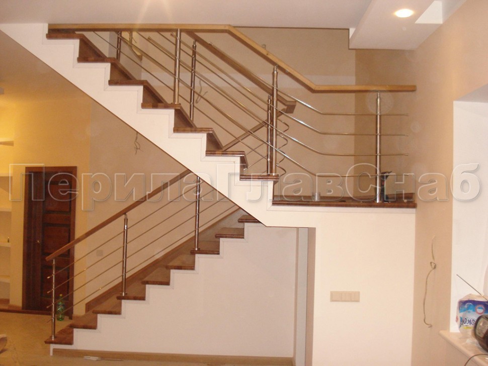 Два ригеля на сварке, квадратный деревянный поручень и круглые стойки
