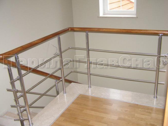 Записаться на встречу Два ригеля на держателях, круглый деревянный поручень и круглые стойки