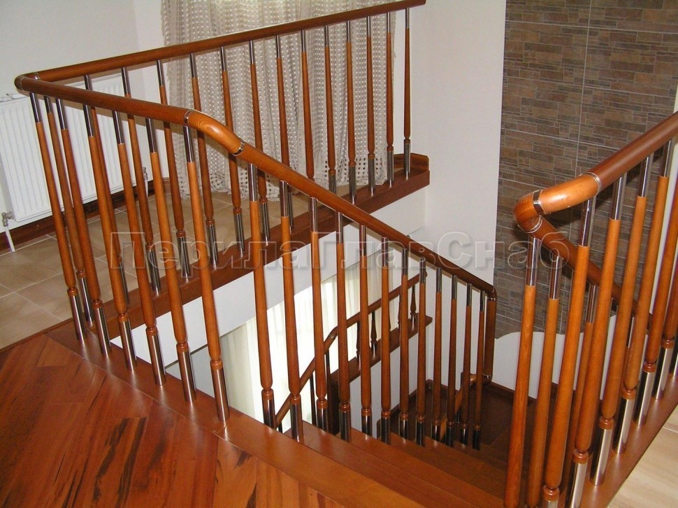 Записаться на встречу Ограждения с двумя стойками в каждую ступень с деревянным поручнем и без ригелей