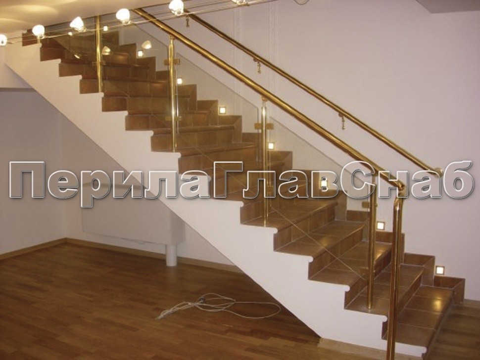 Лестничное ограждение с тремя ригелями и поручнем из латуни в Казани. Готовые проекты ПерилаГлавСнаб - фото 1 Лестничное ограждение с тремя ригелями и поручнем из латуни в Казани. Готовые проекты ПерилаГлавСнаб - фото 2