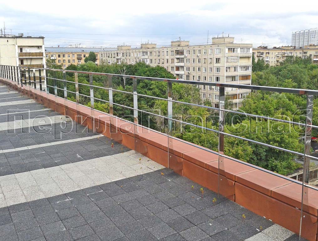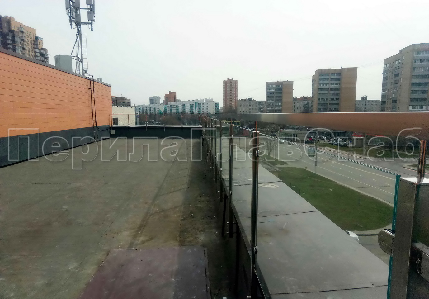 Ограждение на несущем стекле с торцевым креплением для крыш в Казани. Готовые проекты ПерилаГлавСнаб