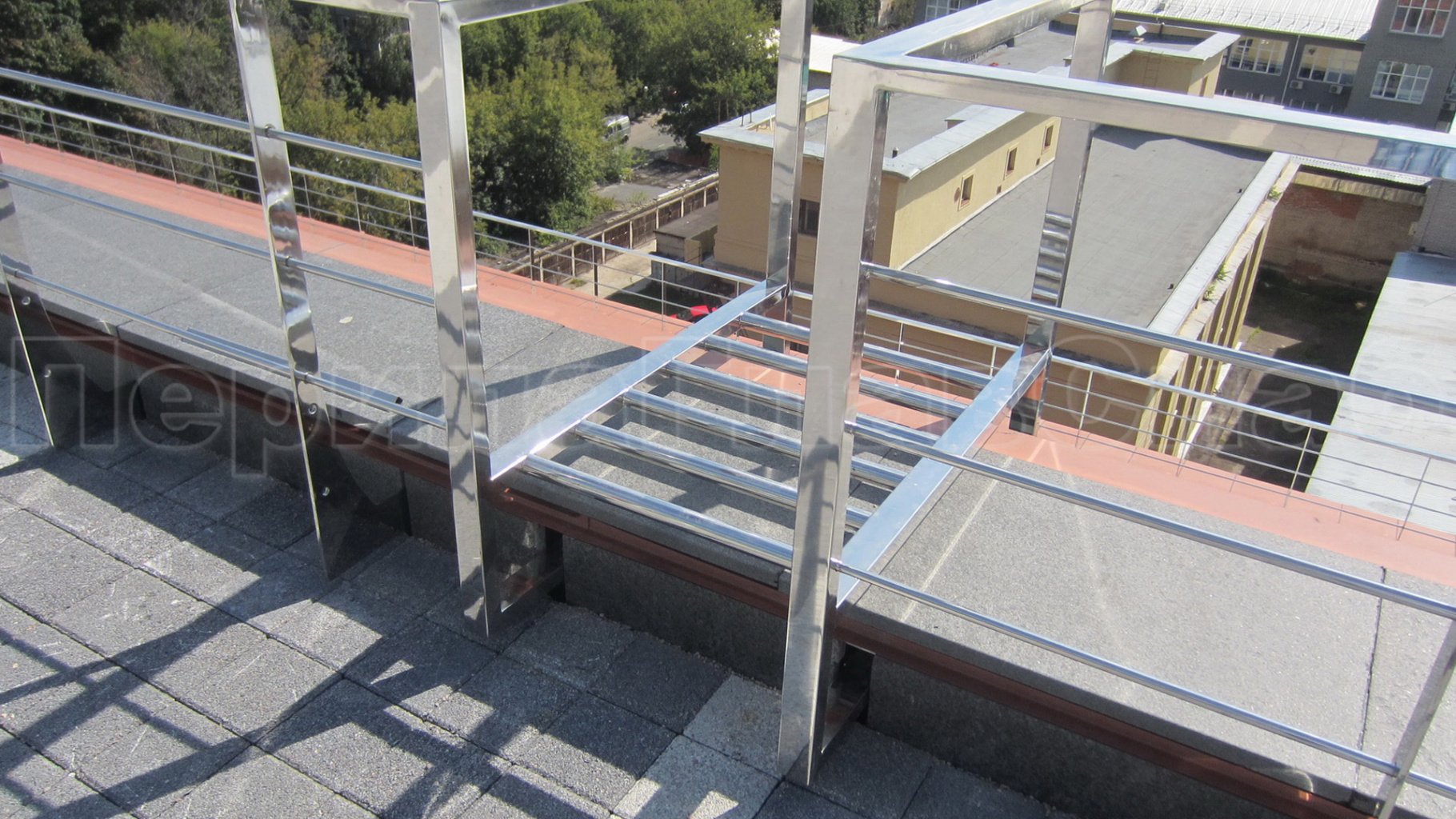 Кровельное ограждение из нержавеющей стали со стеклами в Казани. Готовые проекты ПерилаГлавСнаб