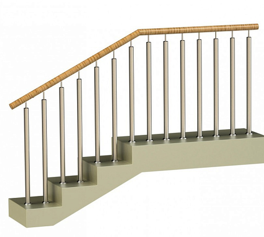 Ограждения со стойками в каждую ступень с круглым деревянным поручнем без ригелей