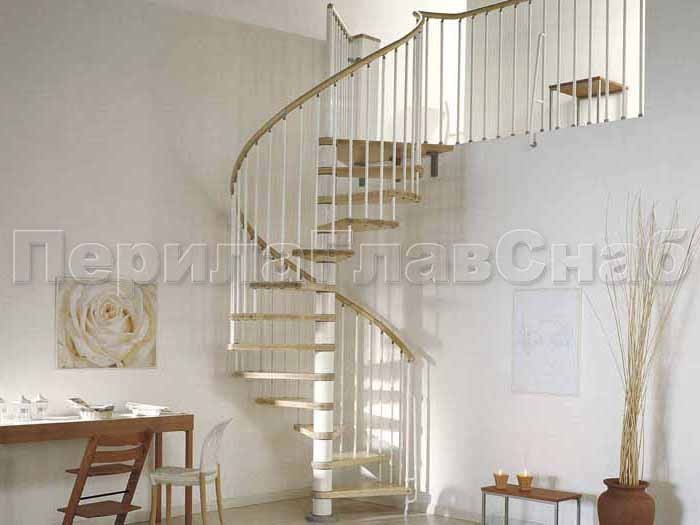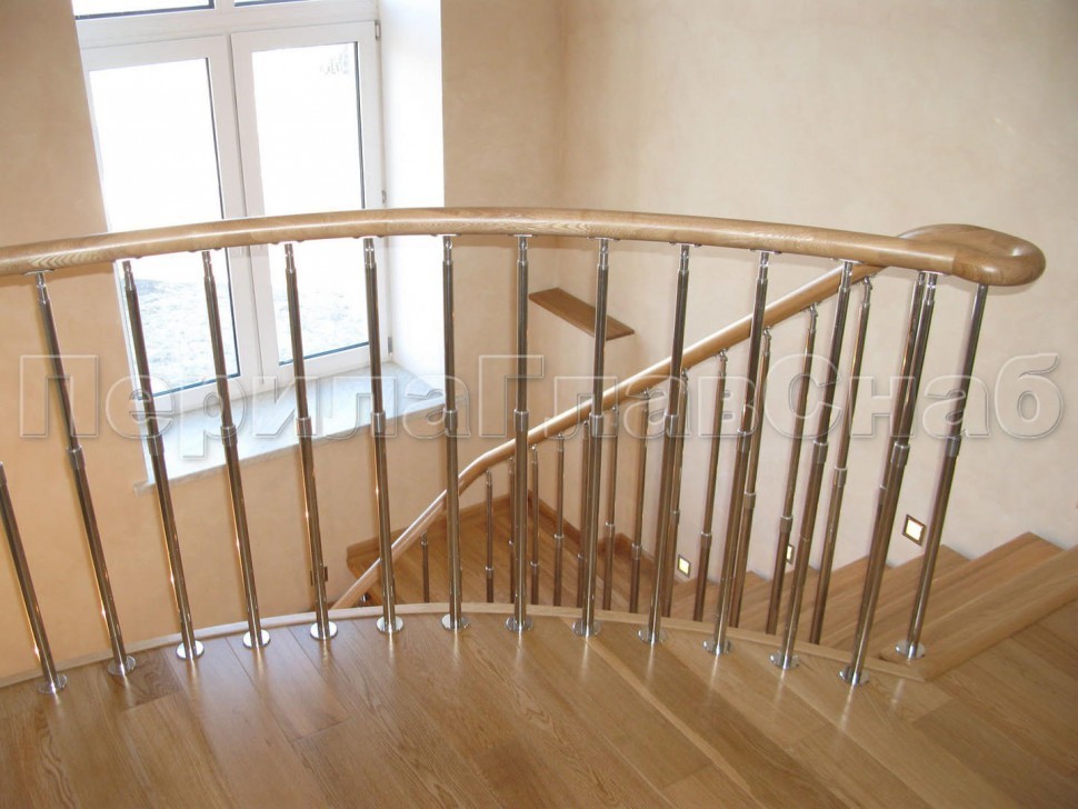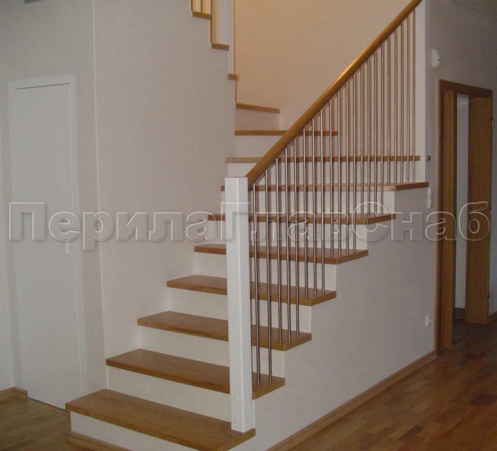 Ограждения со стойками в каждую ступень с круглым деревянным поручнем без ригелей