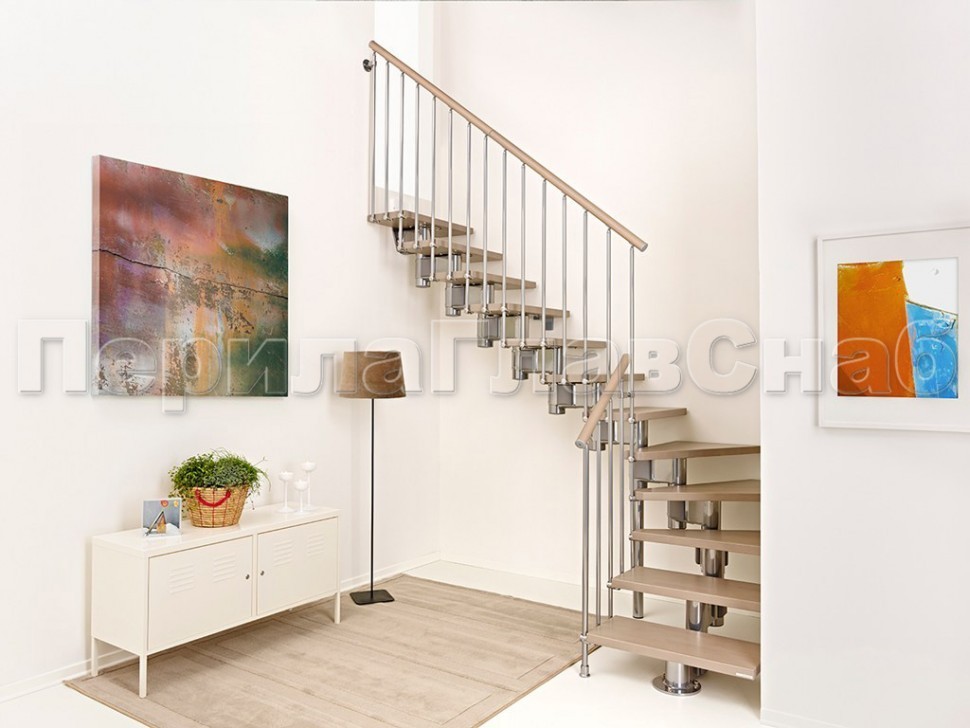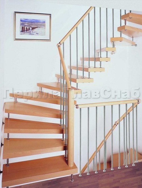 Ограждения с двумя стойками в каждую ступень с деревянным поручнем и без ригелей