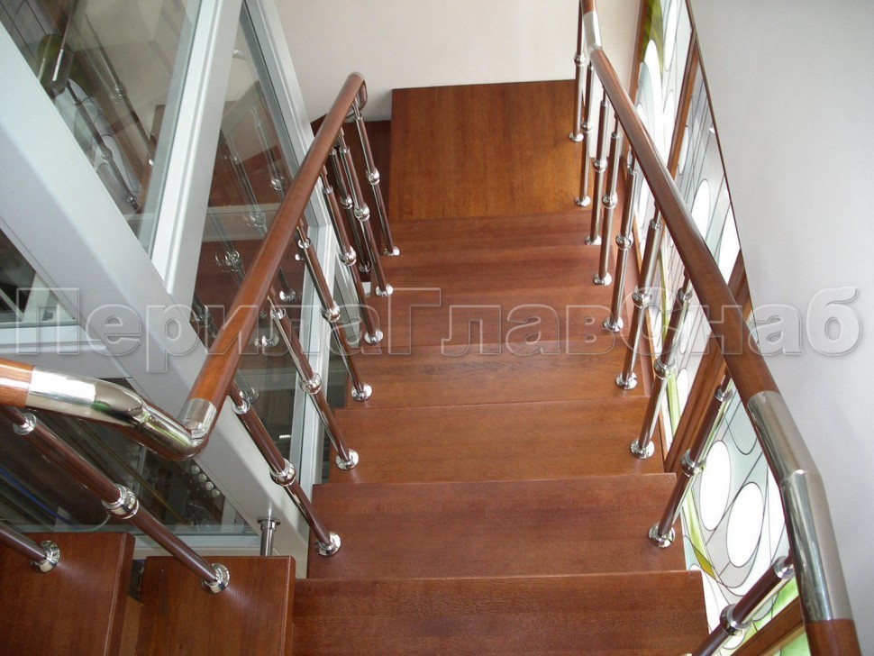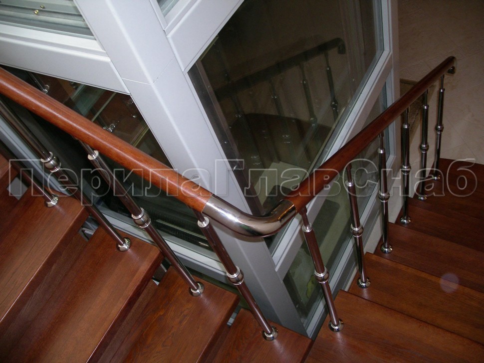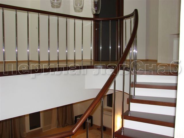 Записаться на встречу            Ограждения со стойками в каждую ступень с круглым деревянным поручнем без ригелей