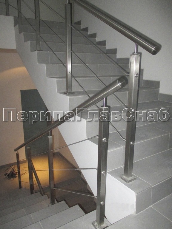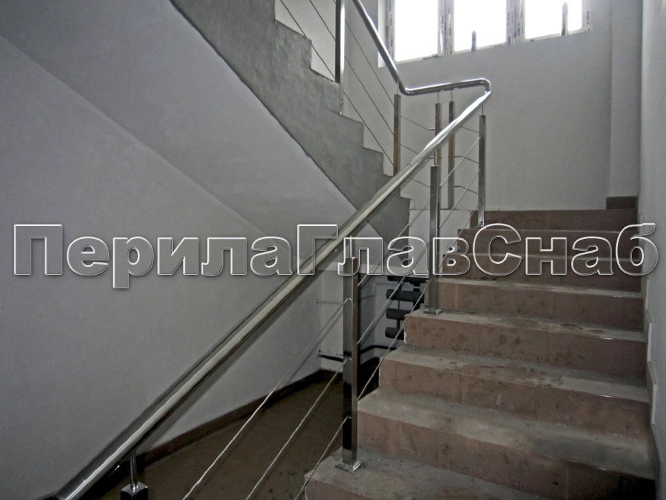 Ограждения из нержавейки. Заполнение из 3х тросиков. Квадратные стойки.