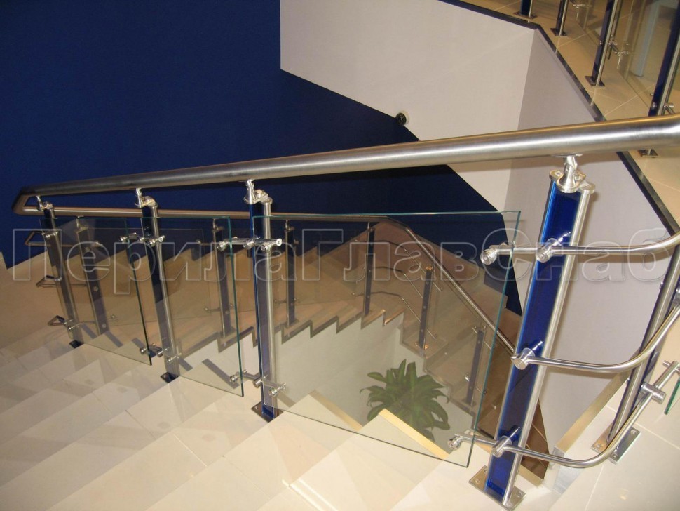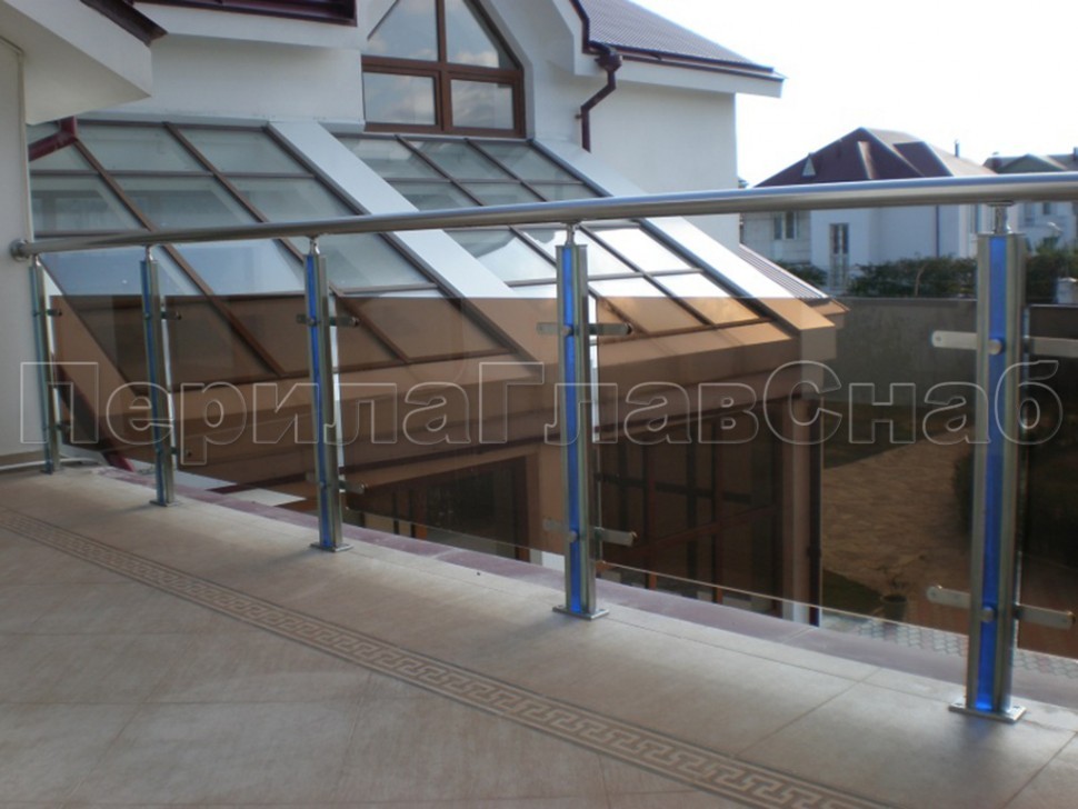 Ограждение атриума со стеклом и стойками