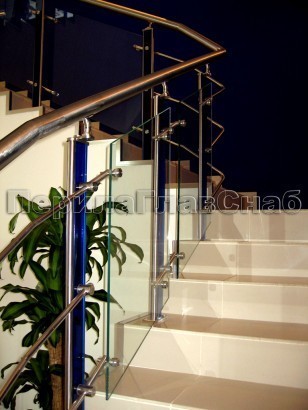 Ограждение для лестницы из нержавейки с зажимными стеклодержателями для крыльца