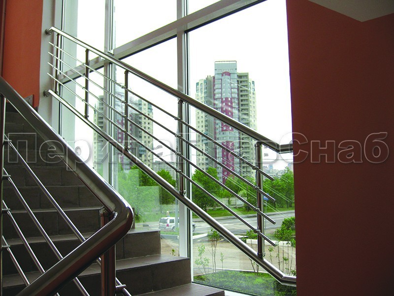 Записаться на встречу Четыре ригеля на держателях, квадратный поручень и круглые стойки