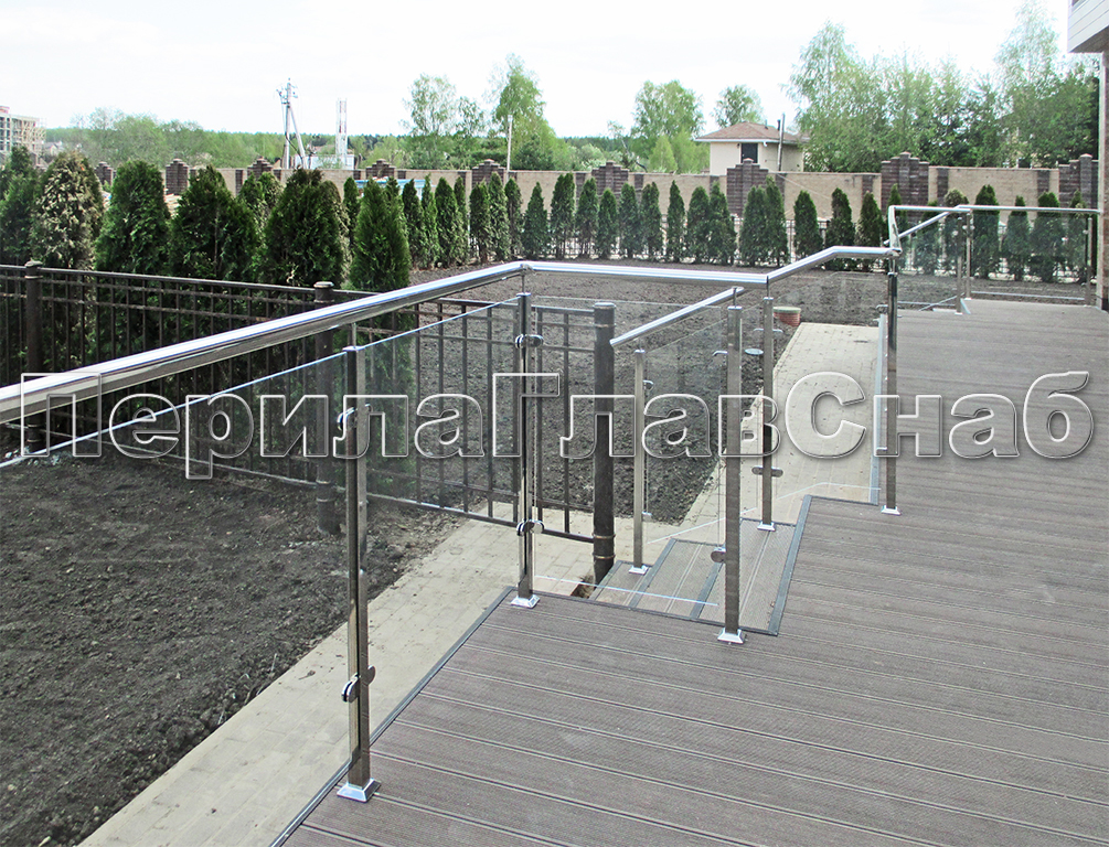 Ограждение для лестницы из нержавейки с зажимными стеклодержателями для крыльца в Казани. Готовые проекты ПерилаГлавСнаб - фото 1 Ограждение для лестницы из нержавейки с зажимными стеклодержателями для крыльца в Казани. Готовые проекты ПерилаГлавСнаб - фото 2