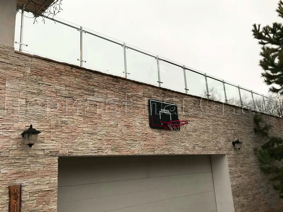 Цельностеклянное ограждение на зажимном алюминиевом профиле для крыльца