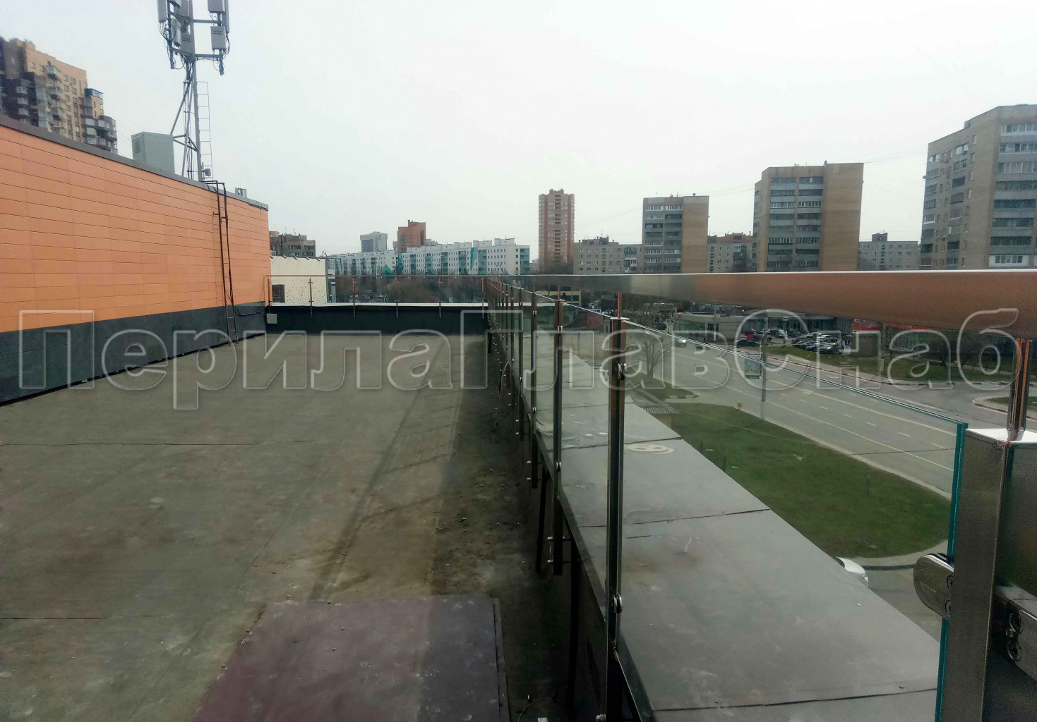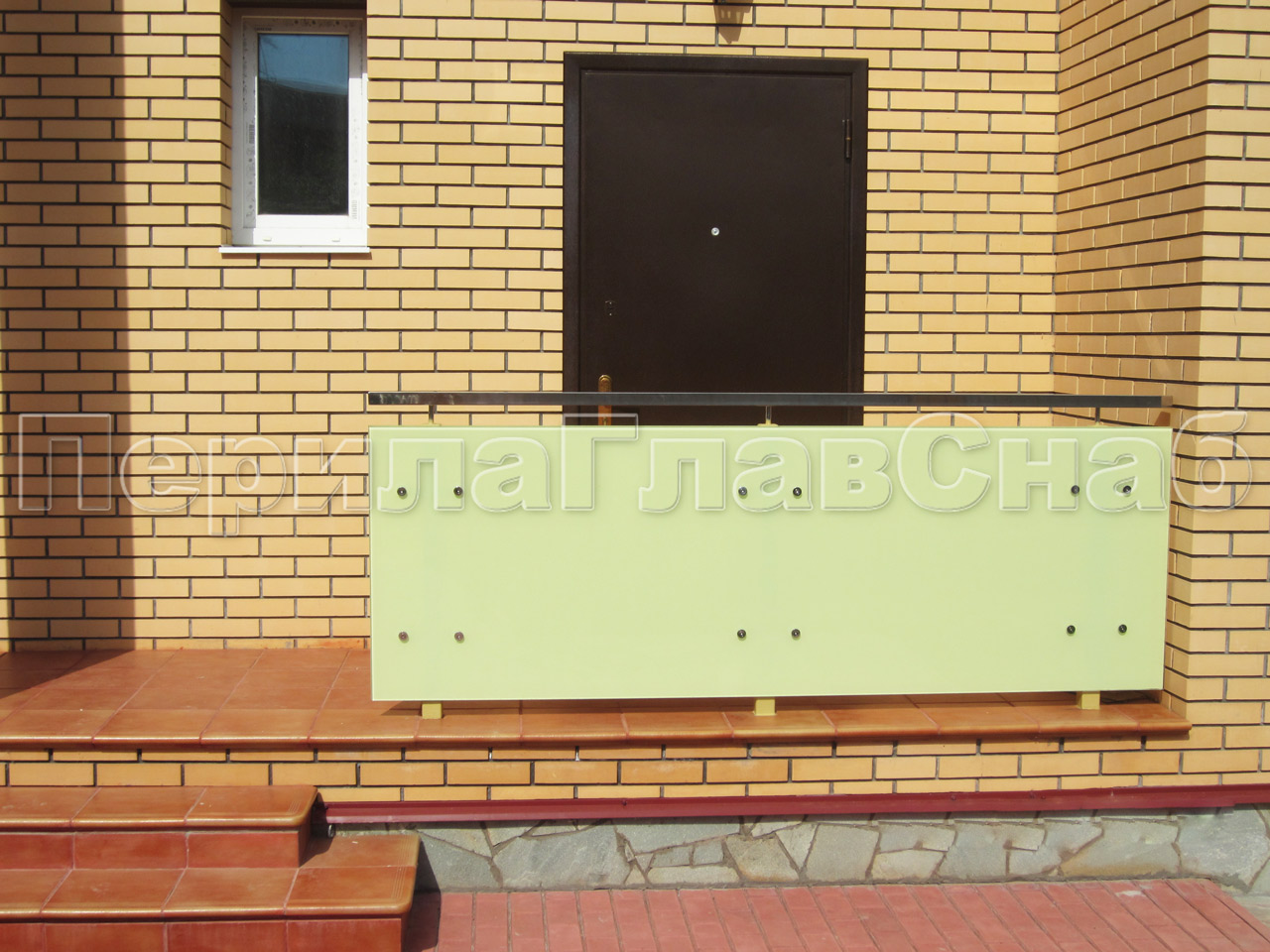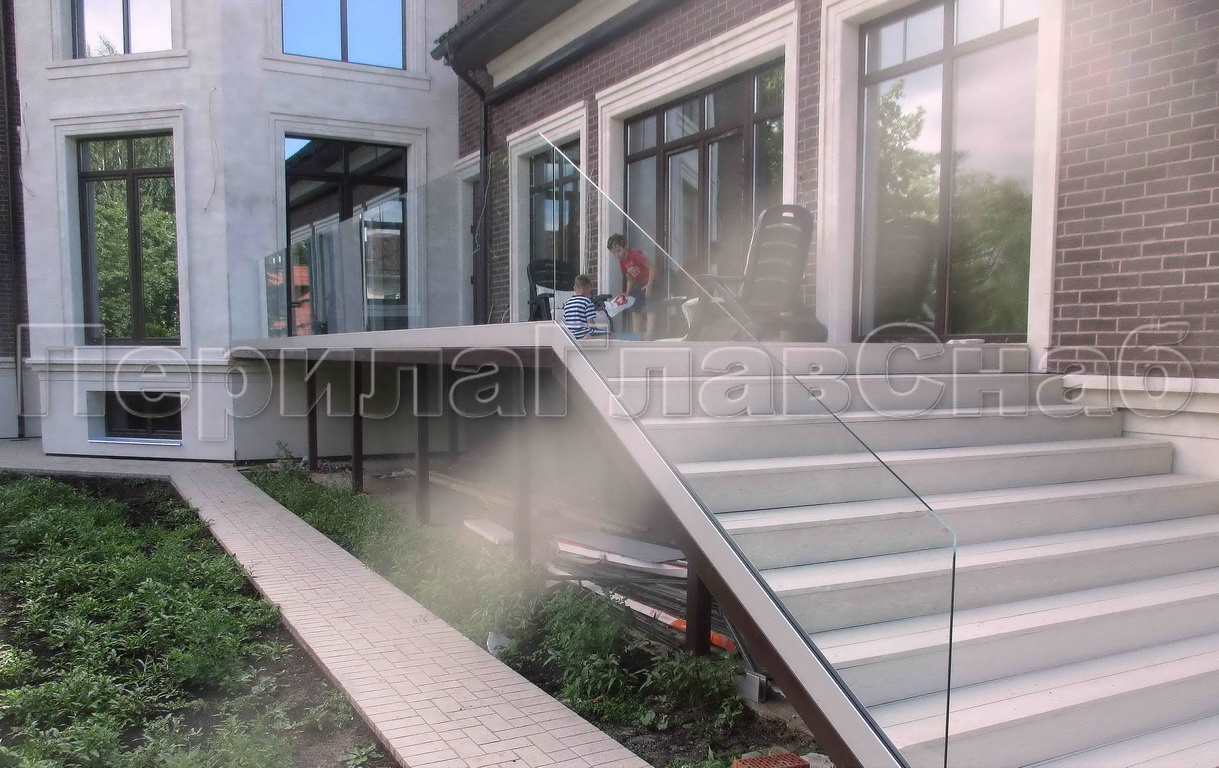 Цельностеклянное ограждение на зажимном алюминиевом профиле для крыльца в Казани. Готовые проекты ПерилаГлавСнаб