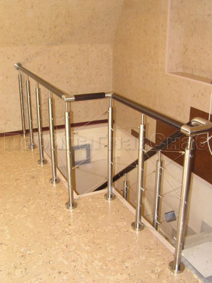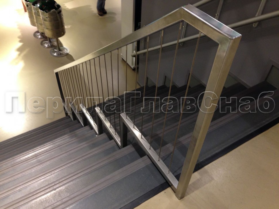 Записаться на встречу Ограждения из нержавейки. Заполнение из тросиков (нестандартная конфигурация) для крыльца