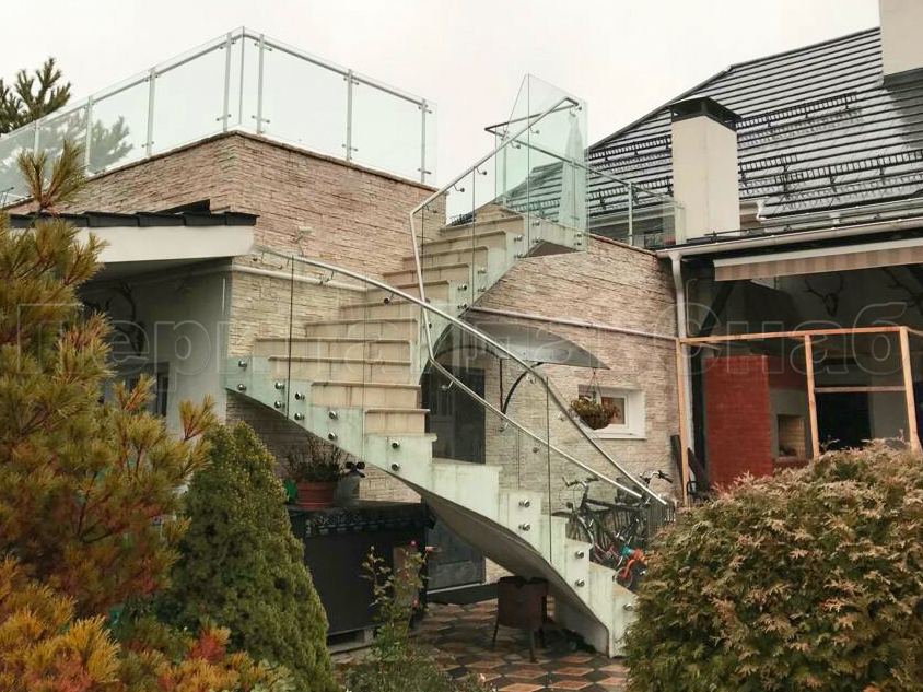 Стеклянные ограждения балкона смотрятся очень современно. Их устанавливают на эксплуатируемую кровлю. Например, если на крыше здания открыто летнее кафе или смотровая площадка, то перила со стеклом будут как нельзя кстати. Стеклянные ограждения для балконов могут быть полностью прозрачными, чтобы не закрывать панорамный вид с крыши. Из соображений безопасности мы используем особо прочное стекло толщиной не менее 16 мм.