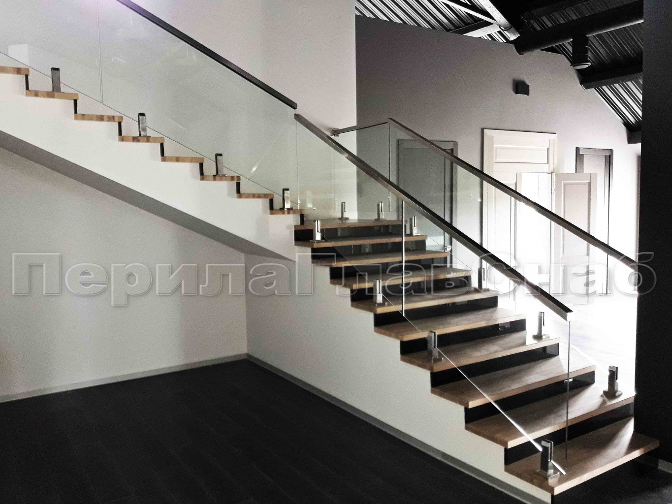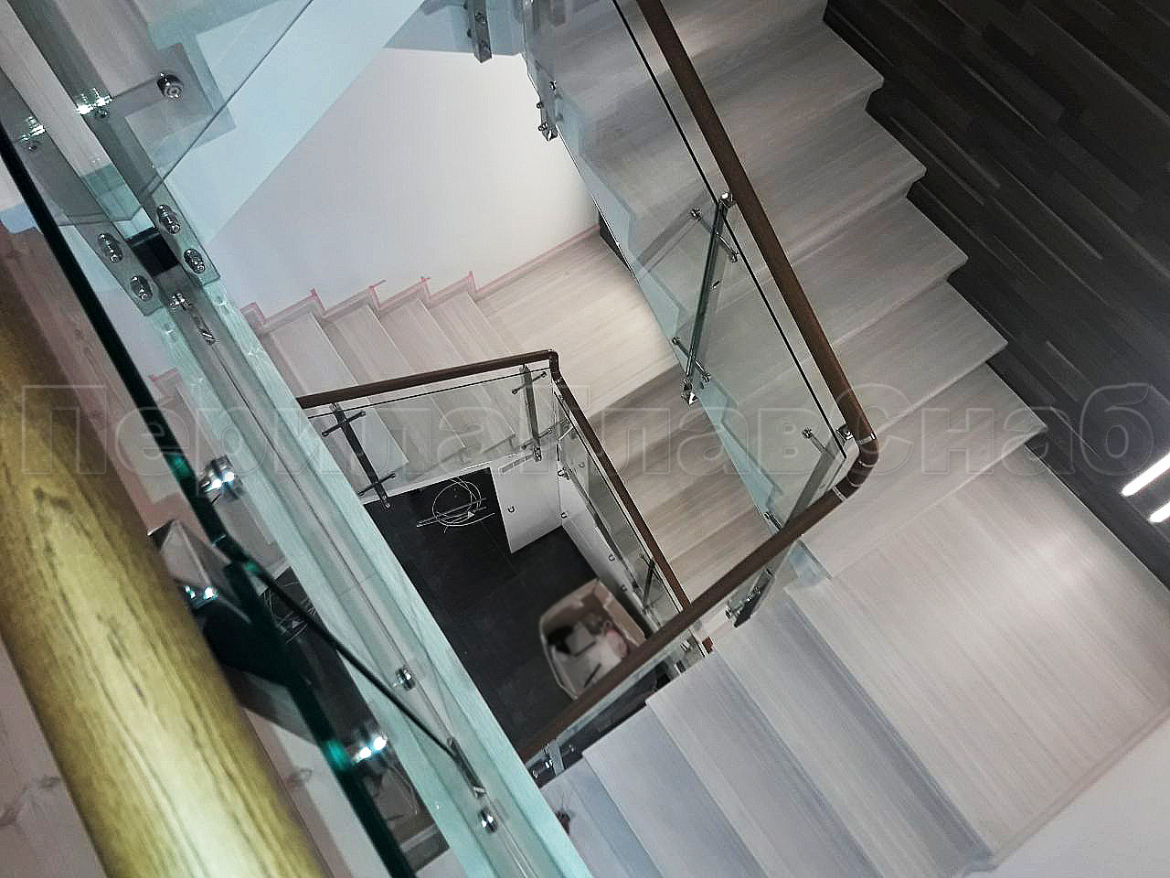 Ограждение лестницы с квадратными стойками и пластинчатыми стеклодержателями в Казани. Готовые проекты ПерилаГлавСнаб - фото 1 Ограждение лестницы с квадратными стойками и пластинчатыми стеклодержателями в Казани. Готовые проекты ПерилаГлавСнаб - фото 2