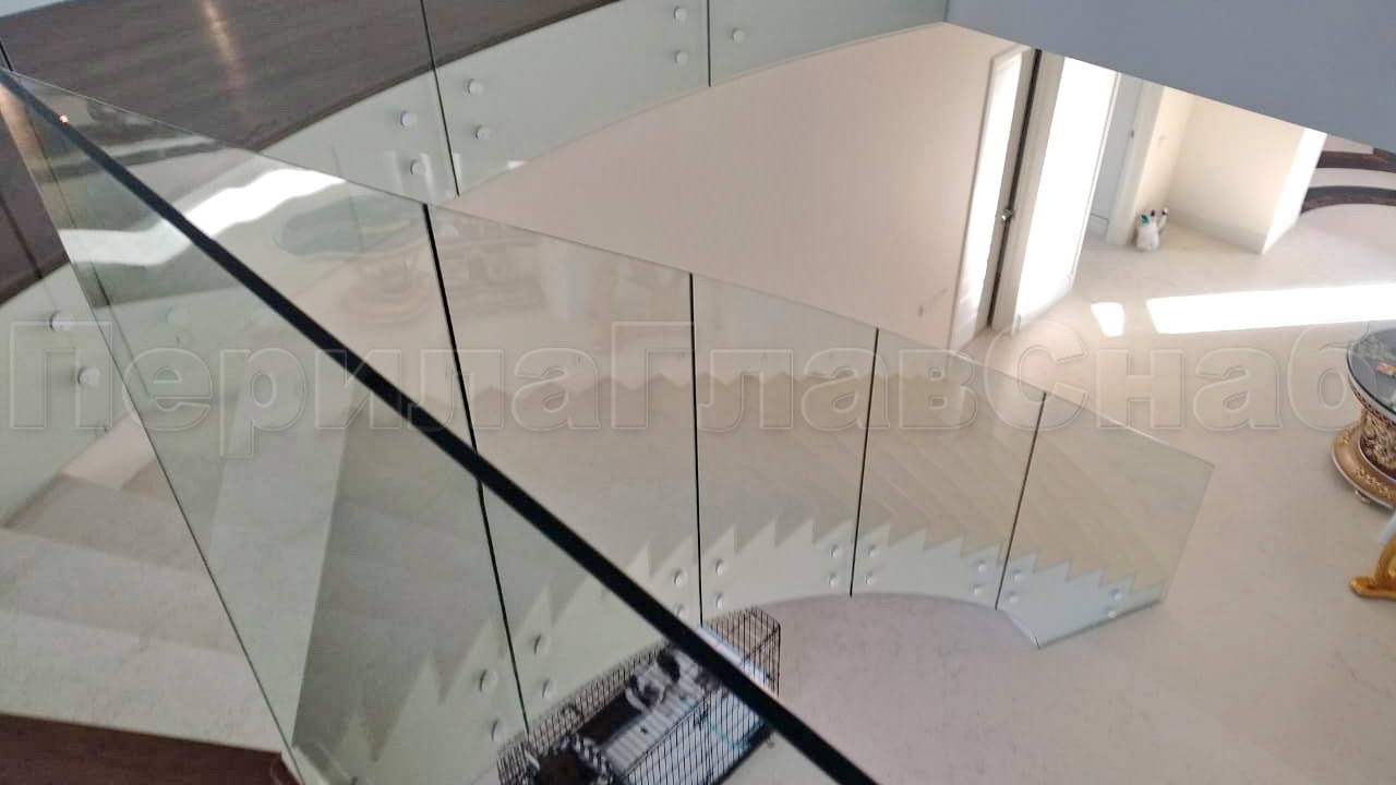 Стеклянные ограждения винтовой лестницы и баллюстрады в Казани. Готовые проекты ПерилаГлавСнаб - фото 1