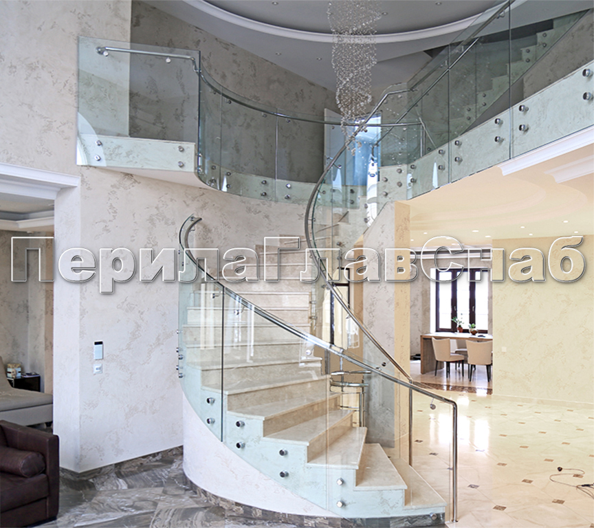 Стеклянные ограждения винтовой лестницы и баллюстрады в Казани. Готовые проекты ПерилаГлавСнаб